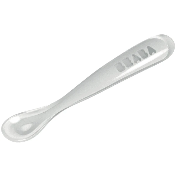 BEABA® Ergonomischer Babylöffel aus Silikon 1. Altersstufe grau