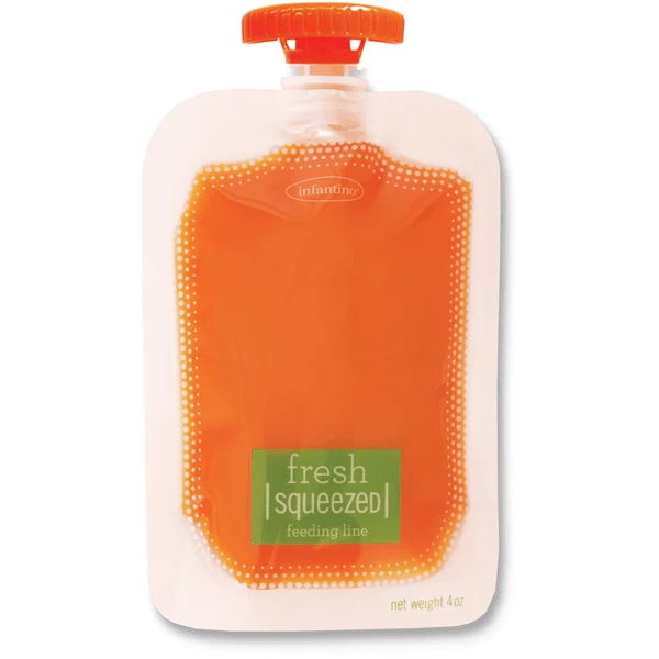 Babynahrung. Die infantino Squeeze Pouches sind ideal für Unterwegs.