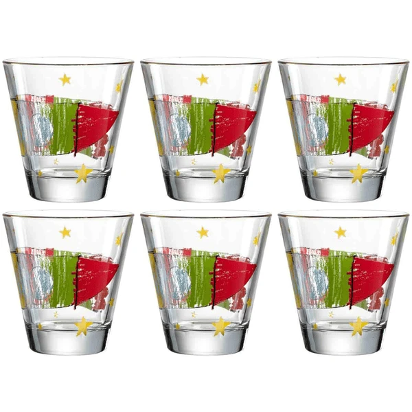 LEONARDO Bambini Kindertrinkgläser 215 ml im 6er Set Die neuen Bambini Trinkgläser sind ein absoluter Hingucker! Mit ‘mehr Zeit für Kinder e.V.’ habt sich Leonardo was ganz Tolles einfallen lassen, denn wer hätte nicht gerne sein absolutes Lieblingsmotiv auf einem Trinkglas? In einer Limited Edition wurden die 6 kreativsten Einsendungen auf die neuen Bambini Gläser gedruckt! Über die neuen Gläser freuen sich viele kleine aber auch die großen Fans ganz besonders! Die Gläser sind ideal für Kinderhände geformt, sehr robust und spülmaschinengeeignet. Artikeldetails: Höhe: ca. 9 cm Durchmesser: ca. 9 cm Nutzinhalt: ca. 120 ml Nutzinhalt (215 ml Randvollvolumen) Merkmal: Ideal für Alltag, spülmaschinengeeignet Lieferumfang: 6x Trinkglas Motiv: Hund, Rakete, Regenbogen, Dinosaurier, Bienen, Baustelle
