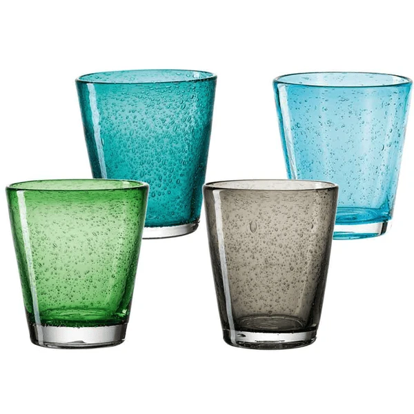 LEONARDO Trinkglas BURANO 330 ml kalte Farben 4er Set Die handgefertigten Unikate sorgen für einzigartigen Genuss! Diese Trinkgläser unterstreichen mit der konischen Form einen frischen und anregenden Stil und entführt in eine Welt voller Emotionen. Jedes Glas ist ein Einzelstück, dass den Blick für das Schöne unterstreicht.