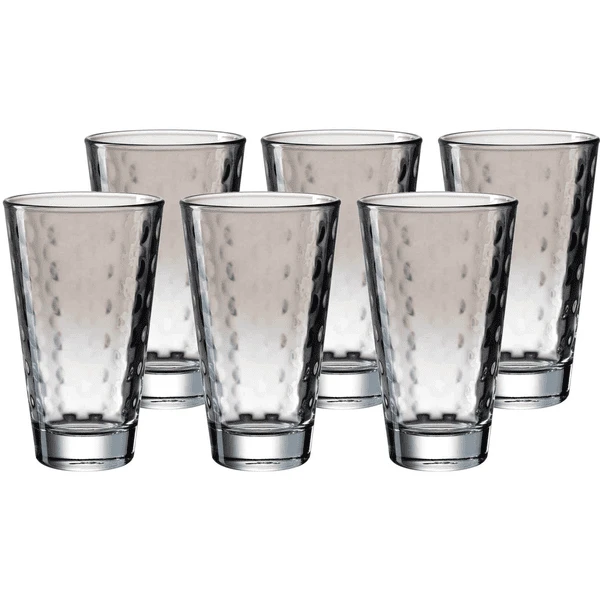 LEONARDO Trinkgläser OPTIC 300 ml 6er Set Dieses Trinkglas von Leonardo bringt Abwechslung in ihren Alltag! Das Besondere an diesem Glas ist das Design – das Innenrelief löst tolle Lichtreflexionen aus. Im neuen Farbkonzept gibt es schöne Pastelltöne für die schönen Optic-Gläser! Artikeldetails: Durchmesser: ca. 8,0 cm Höhe: ca. 13,0 cm Inhalt: ca. 200 ml Nutzvolumen (300 ml Randvollvolumen) Lieferungsumfang: 1 Glas Merkmal: spülmaschinengeeignet, ideal für den Alltag