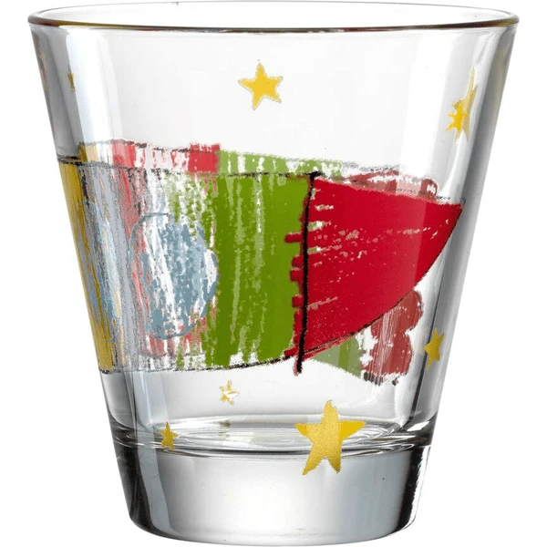 LEONARDO Bambini Kinderbecher Trinkglas 215 ml Das neue Bambini Trinkglas ist ein absoluter Hingucker! Mit ‘mehr Zeit für Kinder e.V.’ habt sich Leonardo was ganz Tolles einfallen lassen, denn wer hätte nicht gerne sein absolutes Lieblingsmotiv auf einem Trinkglas? In einer Limited Edition wurden die 6 kreativsten Einsendungen auf die neuen Bambini Gläser gedruckt! Über die neuen Gläser freuen sich viele kleine aber auch die großen Fans ganz besonders! Die Gläser sind ideal für Kinderhände geformt, sehr robust und spülmaschinengeeignet. Artikeldetails: Höhe: ca. 9 cm Durchmesser: ca. 9 cm Nutzinhalt: ca. 120 ml Nutzinhalt (215 ml Randvollvolumen) Merkmal: Ideal für Alltag, spülmaschinengeeignet Lieferumfang: 1 x Trinkglas