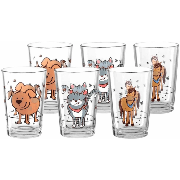 MONTANA KIDS Kinderbecher 210 ml 6er Set Mit diesem Glas fällt selbstständiges Trinken super leicht! Mit dem bunten Tier-Motiv wird das Durstlöschen zum wilden Tierspaß! Dank der handlichen, kindgerechten Form des Kinderbechers lernen bereits die Kleinsten spielerisch den Umgang mit Trinkgläsern. Artikeldetails: Höhe: ca. 10 cm Durchmesser: ca. 7 cm Nutzinhalt: ca. 210 ml Merkmal: stapelbar Lieferungsumfang: 6x Trinkglas