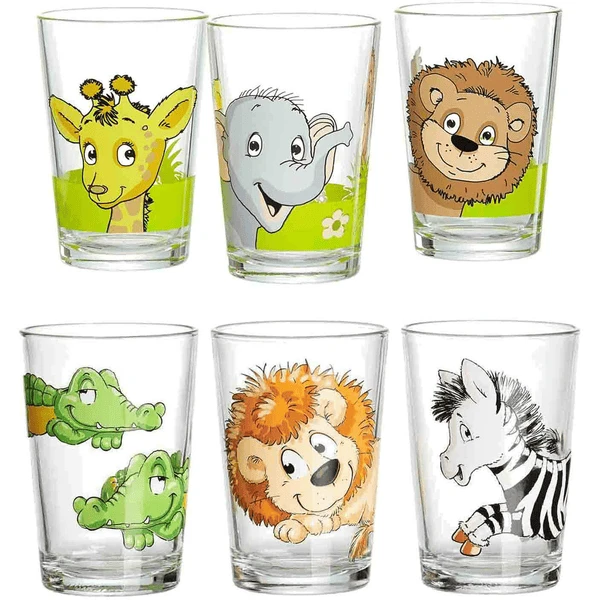 Ritzenhoff & Breker DSCHUNGELTIERE & HAPPY ZOO Kinderglas Set 6-teilig Nur exklusiv bei LUXENTU Zaubern Sie ihren Kindern ein lächeln ins Gesicht – mit dem drolligen Kindertrinkgläser Set von Ritzenhoff & Breker. Niedliche Dschungeltiere & spielfreundige Zootiere animieren zum Essen und Trinken und verbreiten bei jeder Mahlzeit knuddel Laune. Artikeldetails: Durchmesser: ca. 7 cm Höhe: ca. 10 cm Inhalt: ca. 205 ml Nutzinhalt Merkmal: Ideal für den Alltag, spülmaschinengeeignet Lieferumfang: 6x Trinkglas