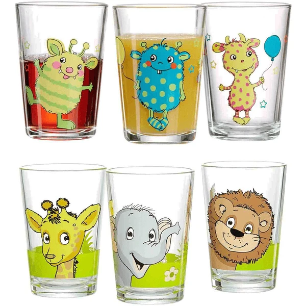 Ritzenhoff & Breker MONSTERCHEN & DSCHUNGELTIERE Kinderglas Set 6-teilig Nur exklusiv bei LUXENTU Zaubern Sie ihren Kindern ein lächeln ins Gesicht – mit dem drolligen Kindertrinkgläser Set von Ritzenhoff & Breker. Niedliche Monster & spielfreundige Dschungeltiere animieren zum Essen und Trinken und verbreiten bei jeder Mahlzeit knuddel Laune. Artikeldetails: Durchmesser: ca. 7 cm Höhe: ca. 10 cm Inhalt: ca. 205 ml Nutzinhalt Merkmal: Ideal für den Alltag, spülmaschinengeeignet Lieferumfang: 6x Trinkglas