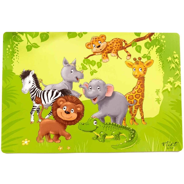Ritzenhoff & Breker DSCHUNGELTIERE Platzmatte 30 x 45 cm Mit den Dschungeltieren macht Essen gleich doppelt so viel Spaß! Löwe, Zebra, Nashorn, Krokodil, Elefant, Giraffe & Leopard – kleine und große Safari-Fans werden das drollige Rudel sofort in ihr Herz schließen Artikeldetails: Breite: ca. 30 cm Länge: ca. 45 cm Material: Kunststoff Merkmal: rutschfeste Unterseite, abwischbar Lieferungsumfang: 1x Platzmatte